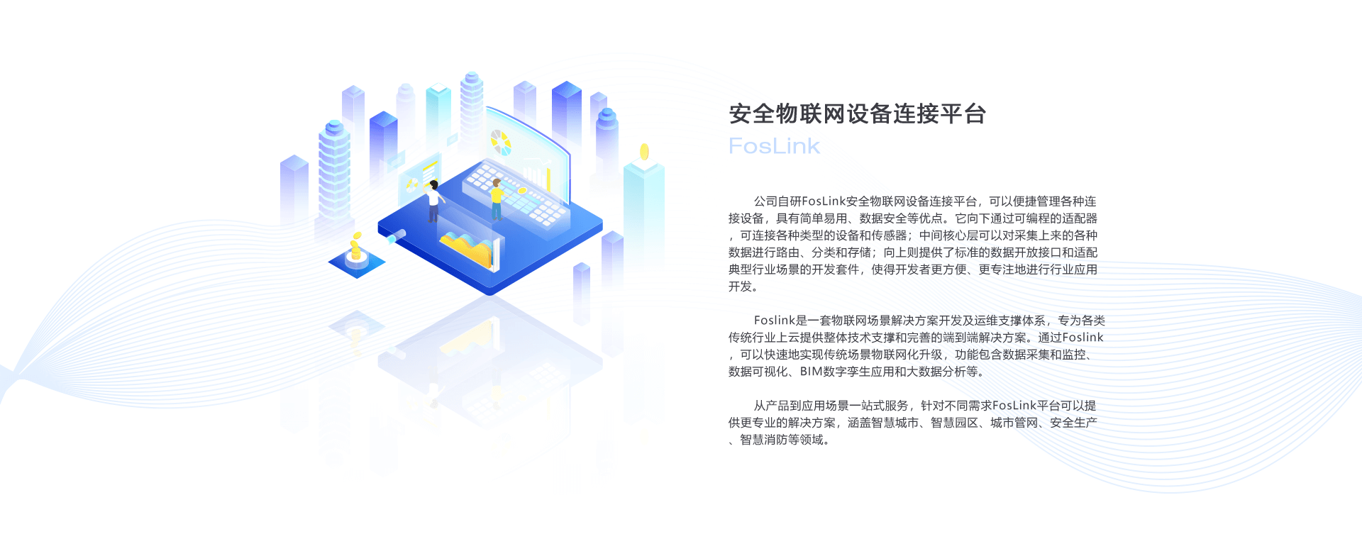 Foslink是一套物聯(lián)網(wǎng)場景解決方案開發(fā)及運(yùn)維支撐體系,專為各類傳統(tǒng)行業(yè)上云提供整體技術(shù)支撐和完善的端到端解決方案。通過Foslink,可以快速地實(shí)現(xiàn)傳統(tǒng)場景物聯(lián)網(wǎng)化升級(jí),功能包含數(shù)據(jù)采集和監(jiān)控、數(shù)據(jù)可視化、BIM數(shù)字孿生應(yīng)用和大數(shù)據(jù)分析等。